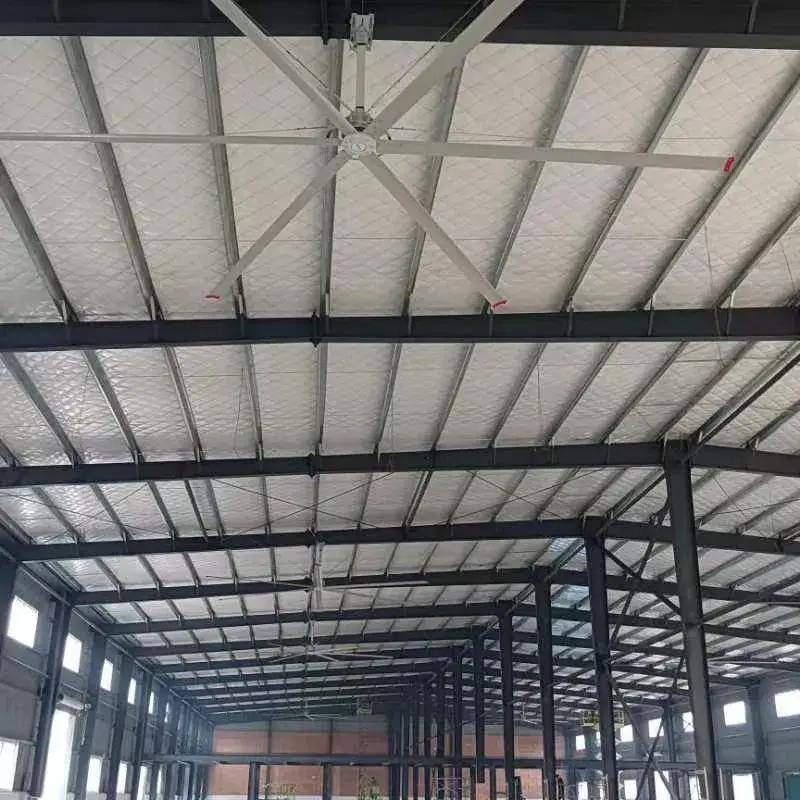 大直径扇叶、低转速,风量大范围内促使空气有序流动,每台风扇的有效近似覆盖面积可达八百平米以上。通过提供大风量、低速度的空气流动来降低室内温度,适用于大型车间和仓库,能够有效地提高空气流通性。气流由上而下成锥形往地面推动,到地面沿水平方向流动,遇到侧面阻隔或邻近风扇的水平气流后向上推动到屋面,从而多角度地强化空气循环流通,形成立体包围通风降温效果。