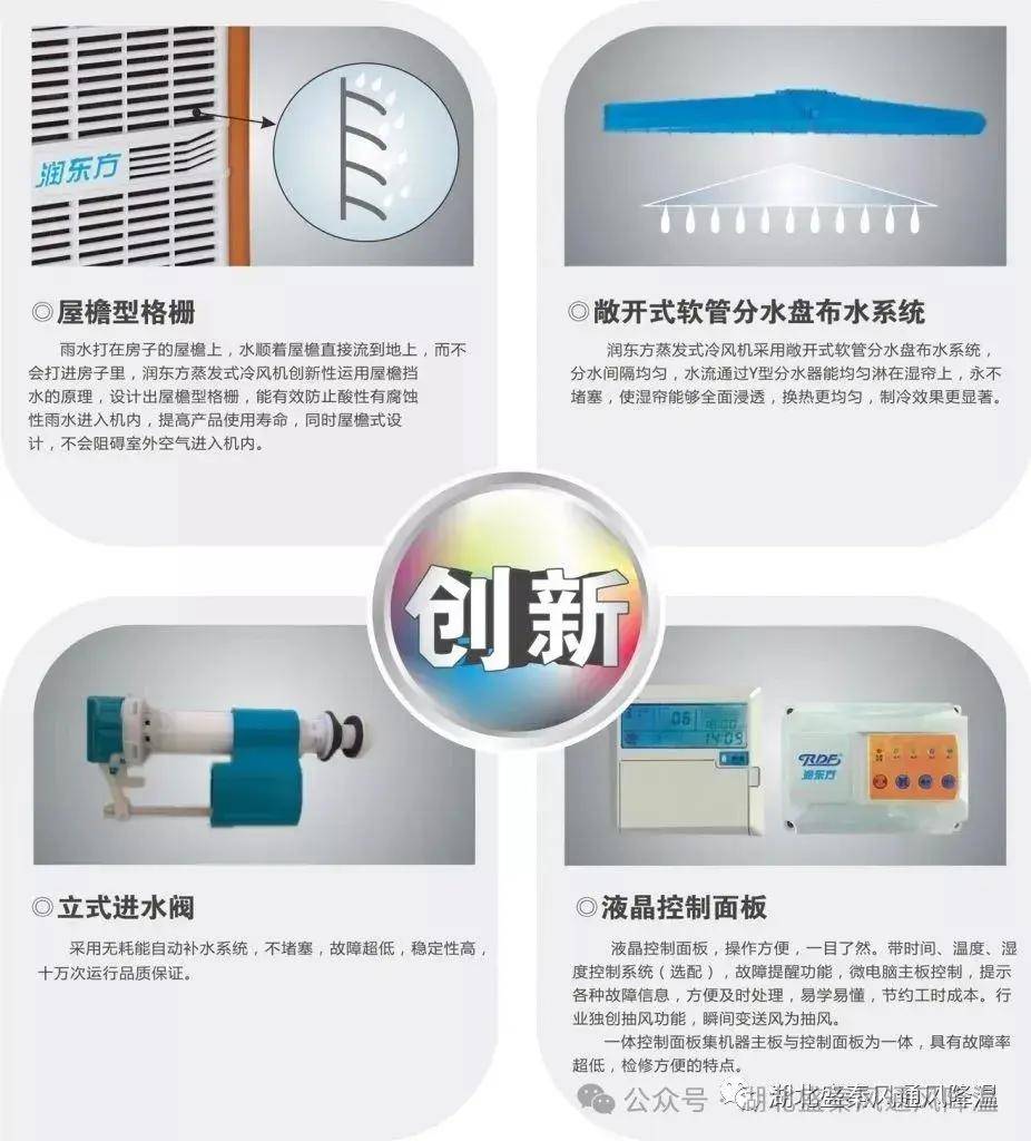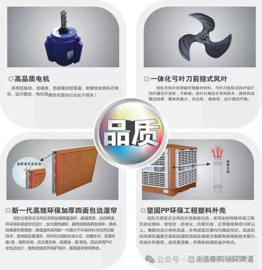 工业冷风机降温核心部件之一是蒸发湿帘,润东方环保空调采用新一代高效环保加厚四面包边湿帘。它具有良好的吸水性和透气性,质地结实,耐水浸,不变形,耐腐蚀,易清洗的特点,同时符合国际标准认证,抑菌性好,防藻性能1级,四边采用PVC全包边设计,能有效固定并保护湿帘,提高湿帘使用寿命。